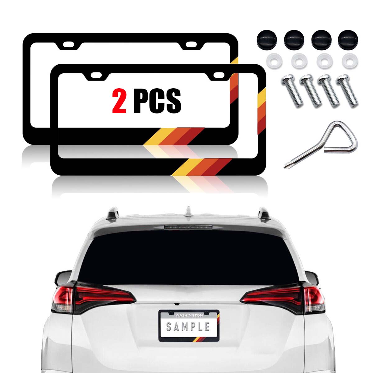 - Easy To Install: The installation is more secure, and there will be no abnormal noise during driving. 4 screws, 4 screw caps, and 1 mounting hardware are provided in the license plate frame kit, no other tools are needed.