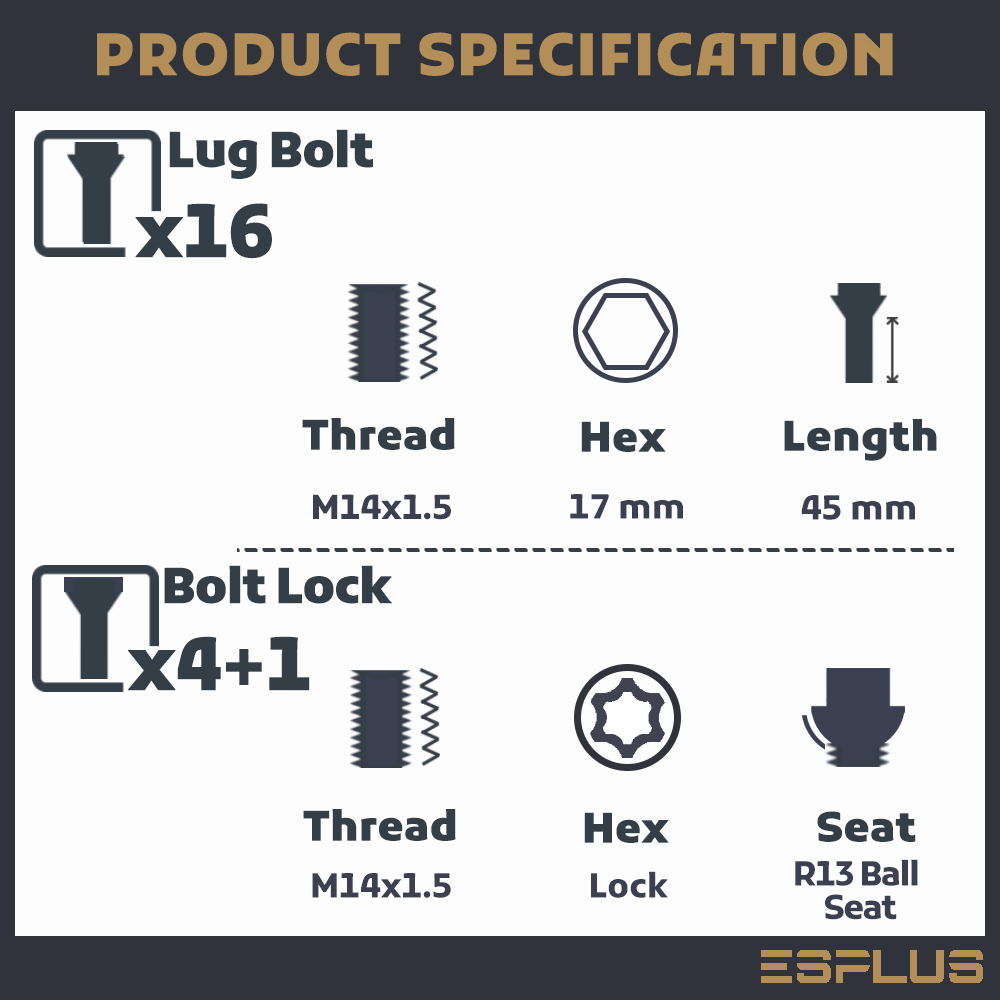 | Quantity: | Set of 16Lug Bolt + Lock Bolt + KEY |