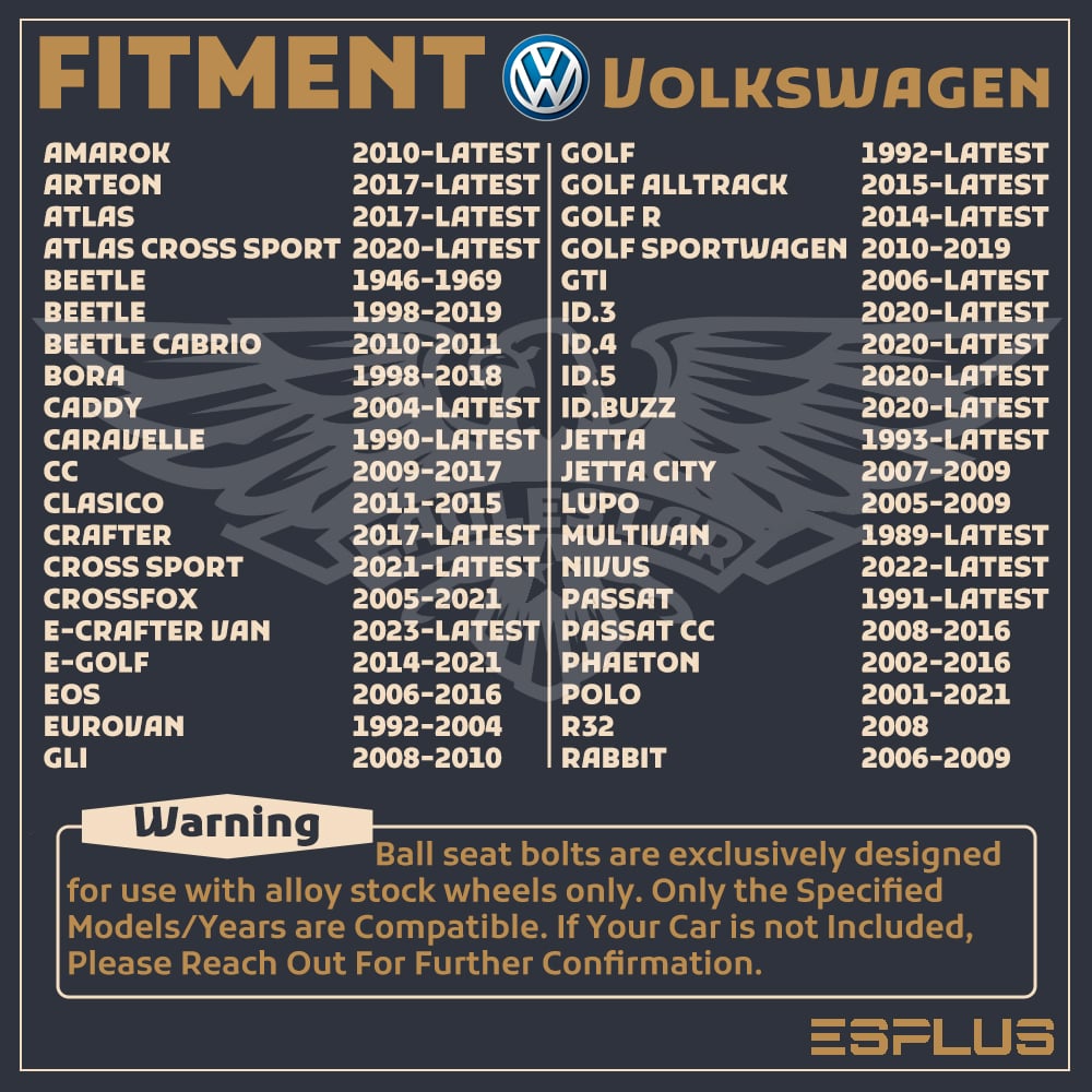 Compatibility chart from Ebay is only designated for Thread Pitch check. The actual fitment varies based on the requirements of wheels. Lug nuts/bolts seat has to strictly follow the wheel condition. If you are not sure, please do not hesitate to ask customer service.