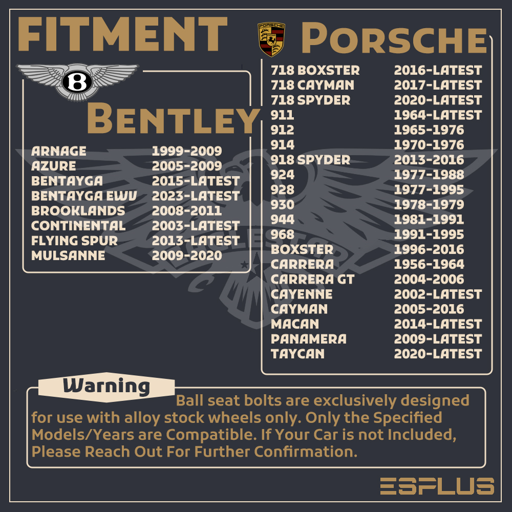 For stock wheel users, we suggest to use shape of existing lug Bolts' Flange, Seat Type, and Shank Length as refernce before buying.