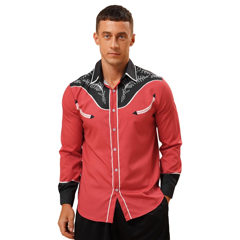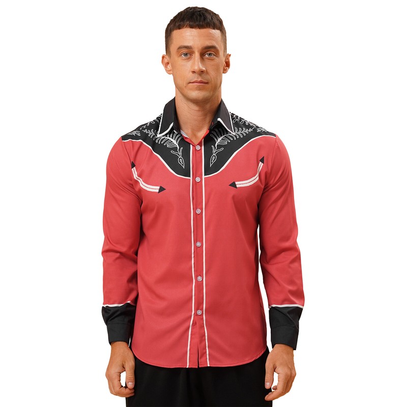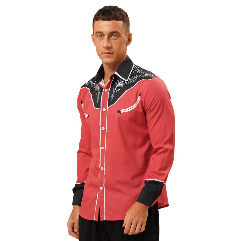 Men's Western Cowboy Shirt Embroidered Long Sleeve Casual Button Down Shirts