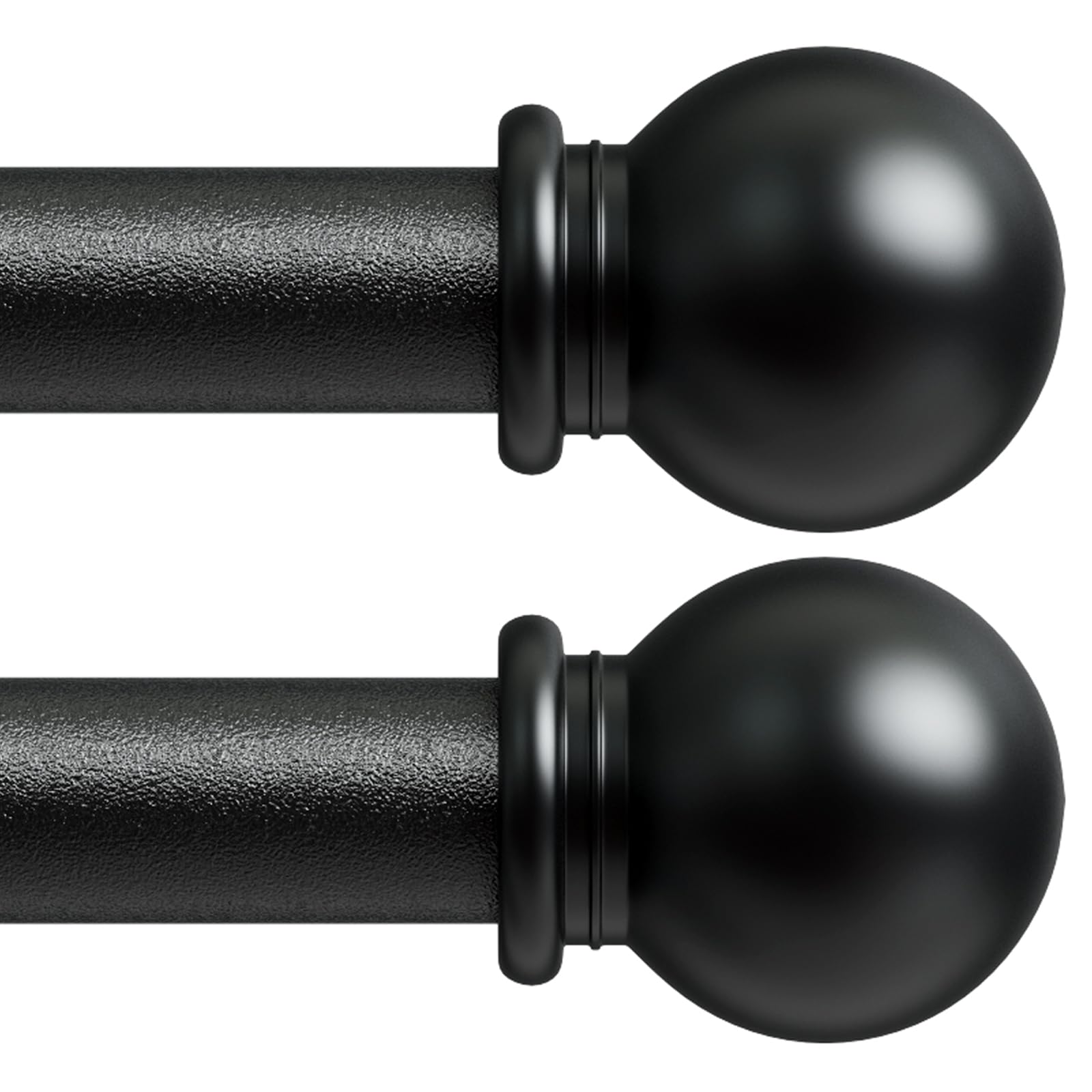• Valued 2 Pack Curtain Rods Set ▶ These curtain rods set of 2(28-48 inch) features matte black rods and stylish ball finials at two ends, visually beautiful and cool, matching your windows of different types.
