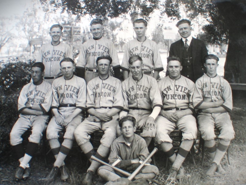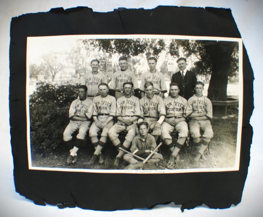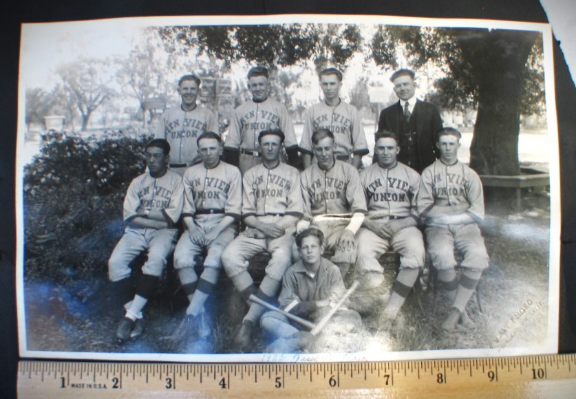Vintage 1922 Photos of School Class & the Baseball Team from Mountain View - Los Altos, California Union High School... Both photos have a small embossed makers mark "TAIT Photos - Mountain View California"... They are mounted back to back on an old black paper album page... Photos condition is good but black paper album page is rough - please see photos for details... Photos each measure about 6 1/2 inches by 10 1/2 inches - - Black album page originally measured 10" by 12" ...