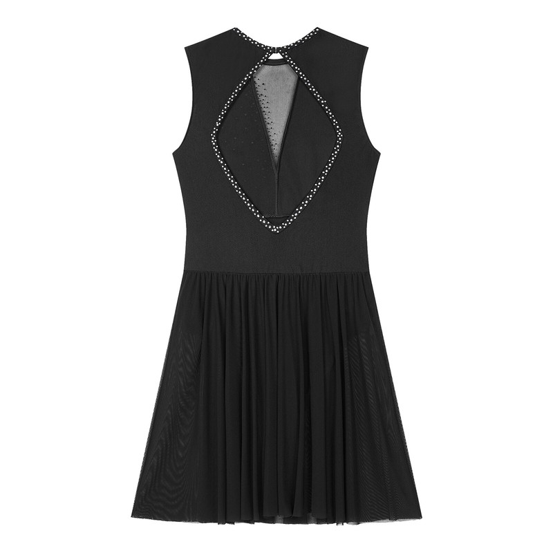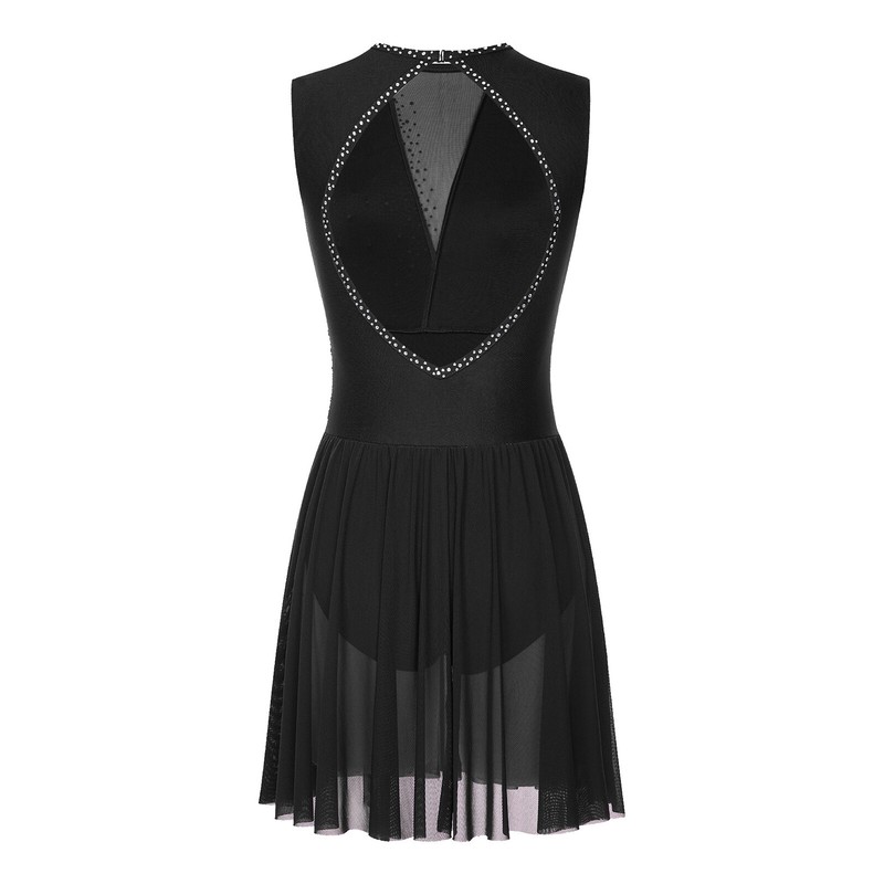 Women’s sleeveless dance dress with shiny rhinestones brightens up any performance and makes you eye-catching in the crowd.