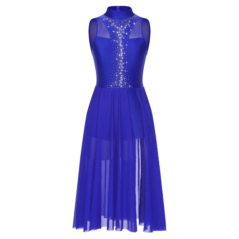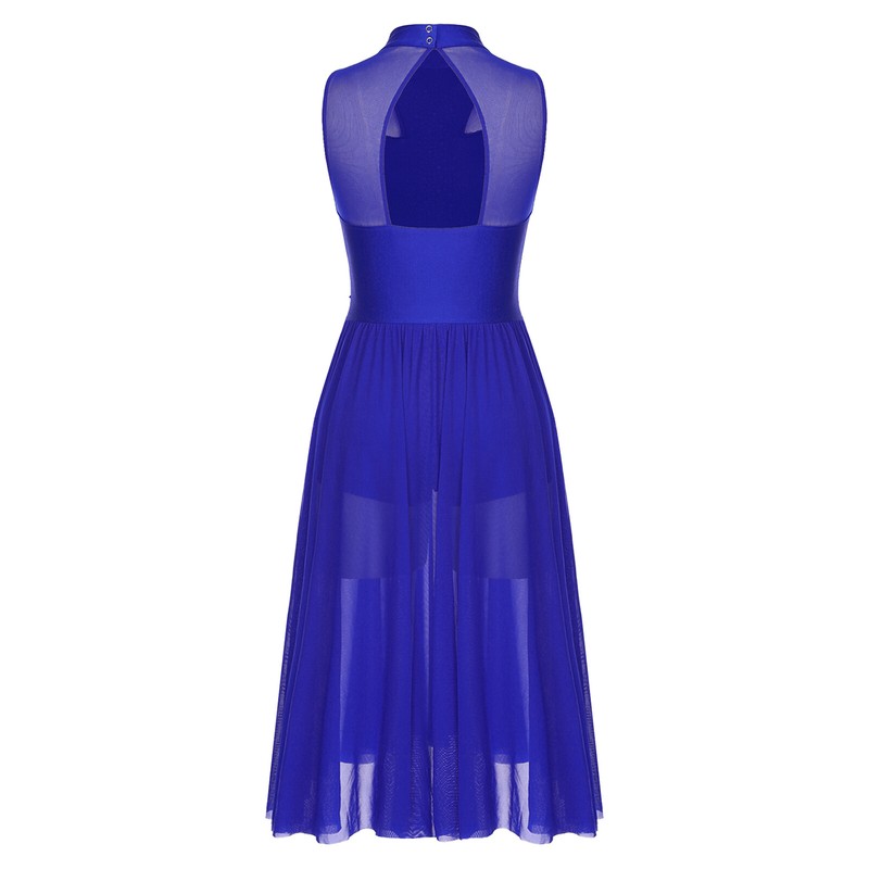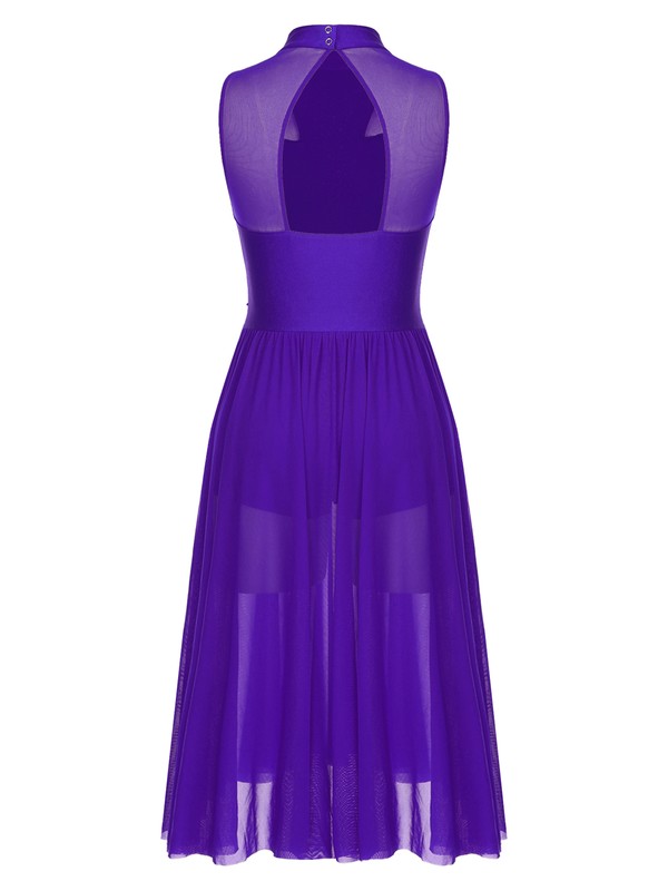 Sleeveless dance dress, mock neck with press buttons closure, back keyhole design.