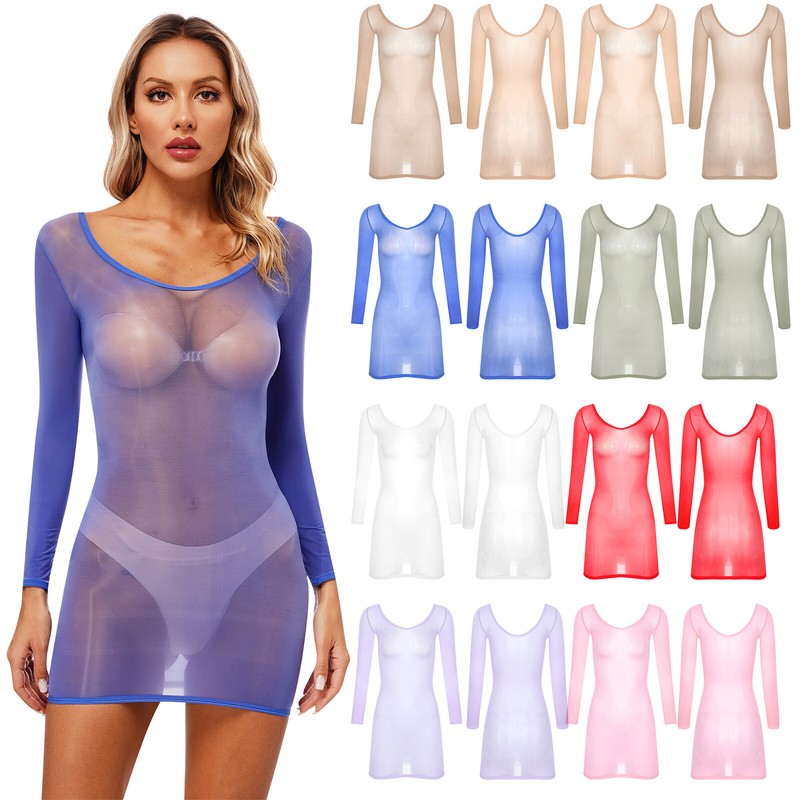 Women’s one-piece erotic hollow out fishnet bodystockings lingerie mini dress, one size fits most.