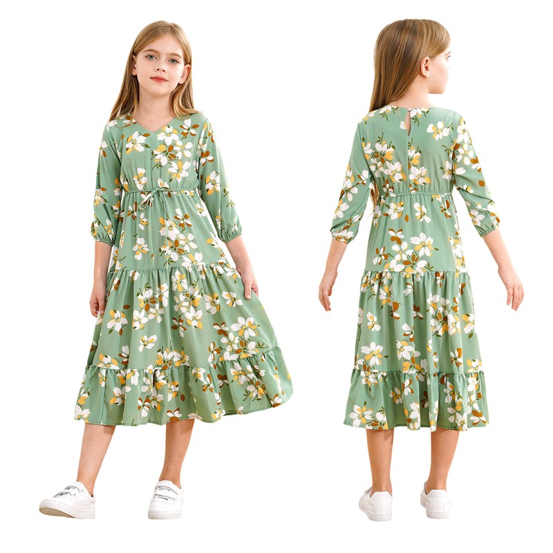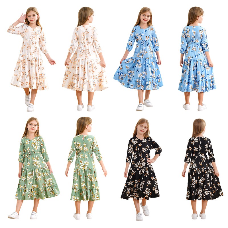Elastic design at waist and cuffs are stretchy to fit. This ankle length long dress is loose to fit.