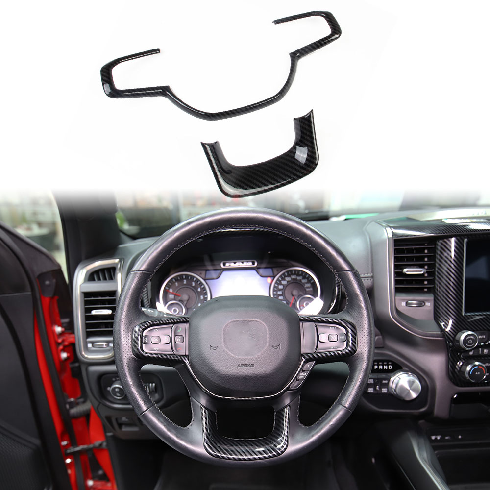 Carbon Fiber Style Interior Central Control Steering Wheel Frame Cover Trim For Dodge Ram 1500 2500 3500 2019-2024 Accessories