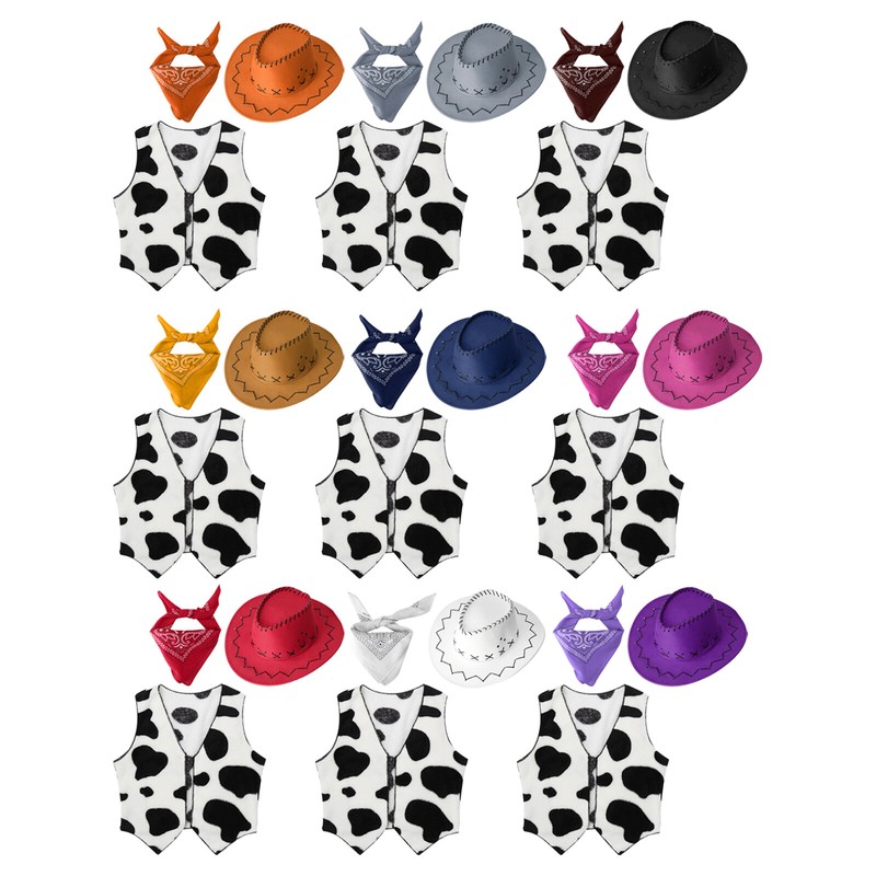 Set Include: 1Pc Vest, 1Pc Cowboy Bandanna, 1Pc Western Cowboy Hat