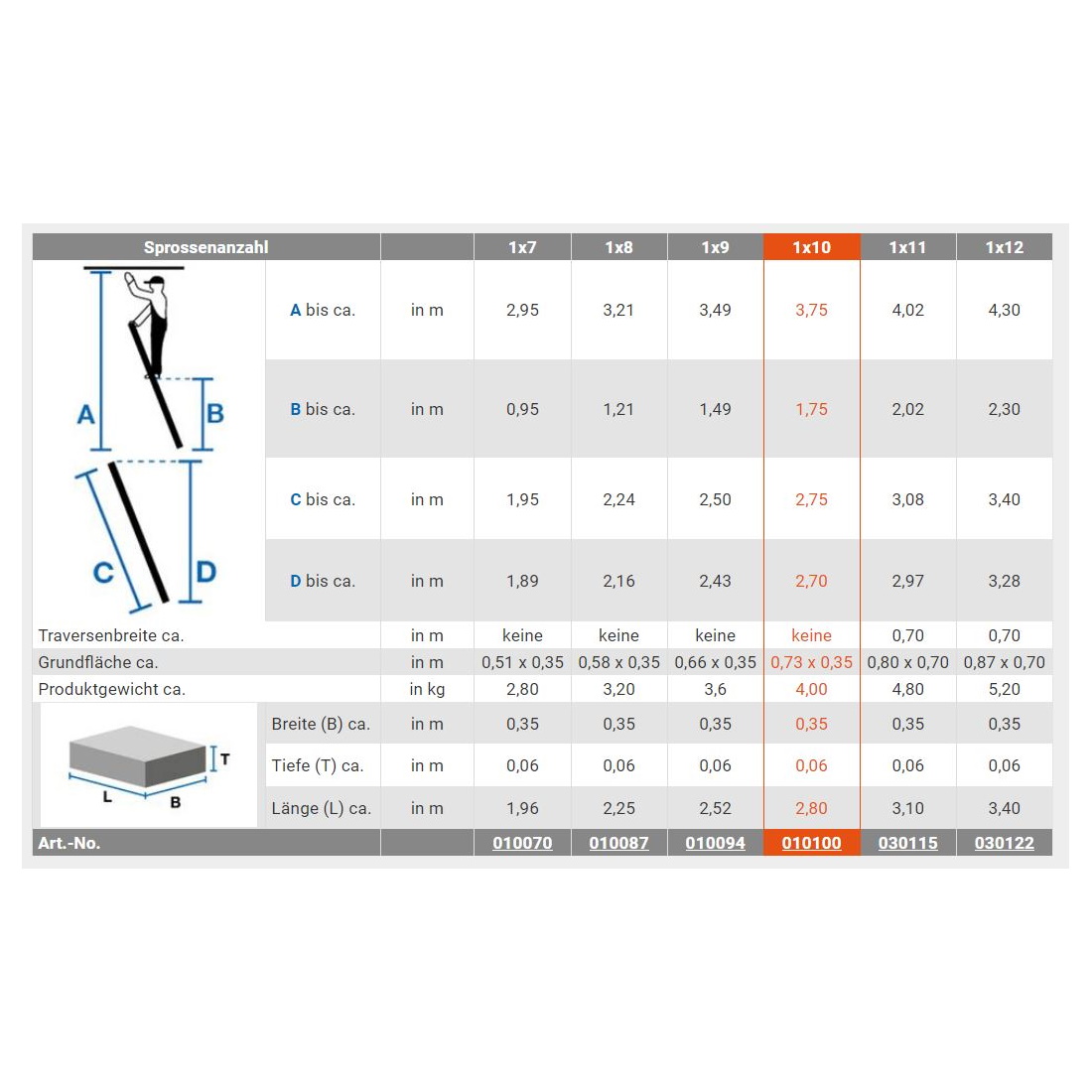 - Inkl. einer zusätzlichen Traverse entspr. DIN EN 131-1