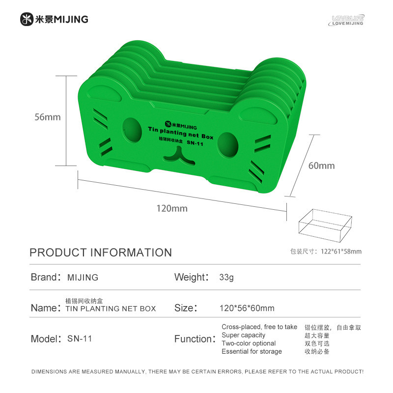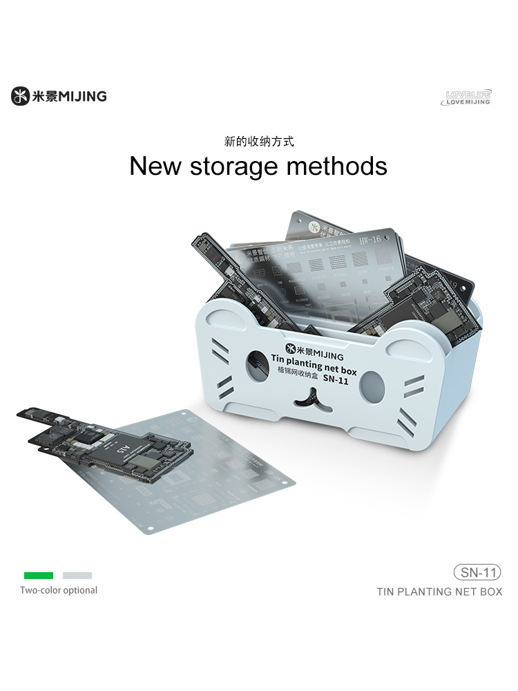 MJ SN-11 Reballing Stencil Storage Box For Mobile Phone Mainboard Chip Rework Convenient Fast Access Tin Mesh Plastic Storage Box