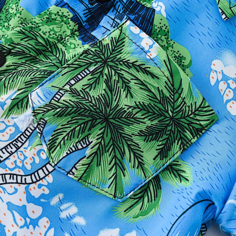A short sleeve button down shirt for boy, with a front pocket, looks simple and cute.