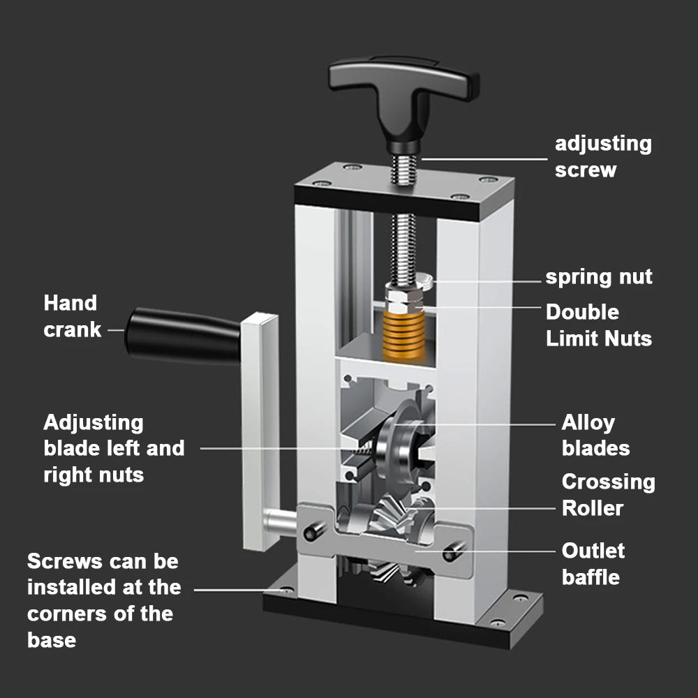 【Hand Crank & Electric Drill Drive】: Humanengineering hand crank design, labor saving and smooth, comfortable operation. Expected to be driven by an external hand crank, it can also be connected to electric drill to convert it to an electric wire stripping machine to increase the wire stripping capacity.