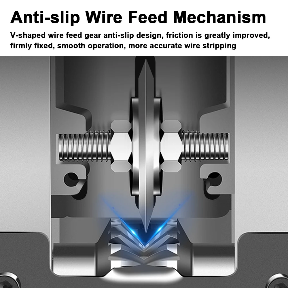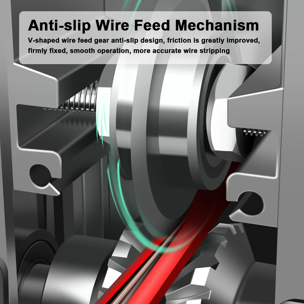 【Anti-slip Wire Feed Mechanism】: V-shaped wire feed gear anti-slip design, friction is greatly improved, firmly fixed, smooth operation, more accurate wire stripping.
