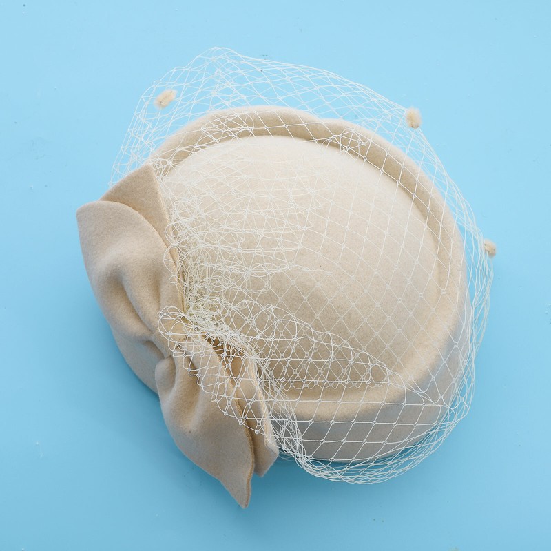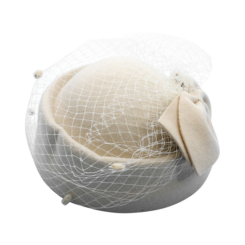 Vintage British pillbox derby hat decorates with big bowknot and mesh veil, bringing you back to 1920s and making you charming.