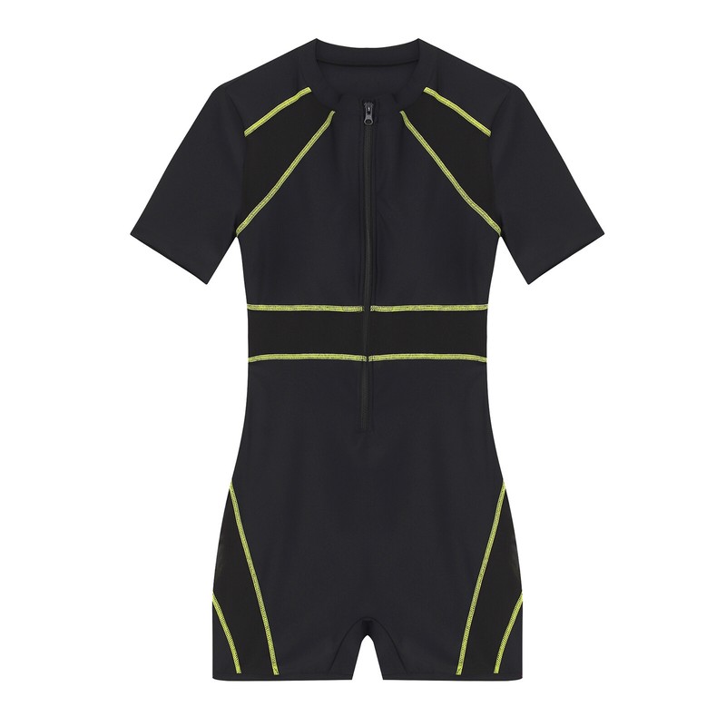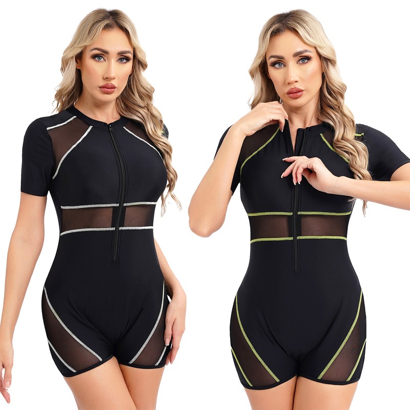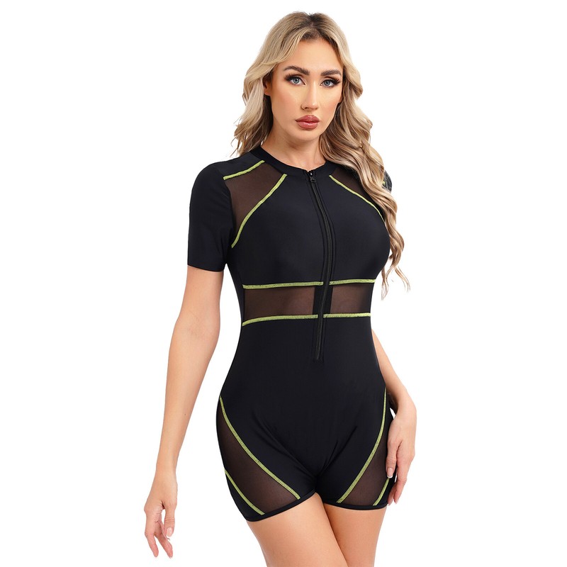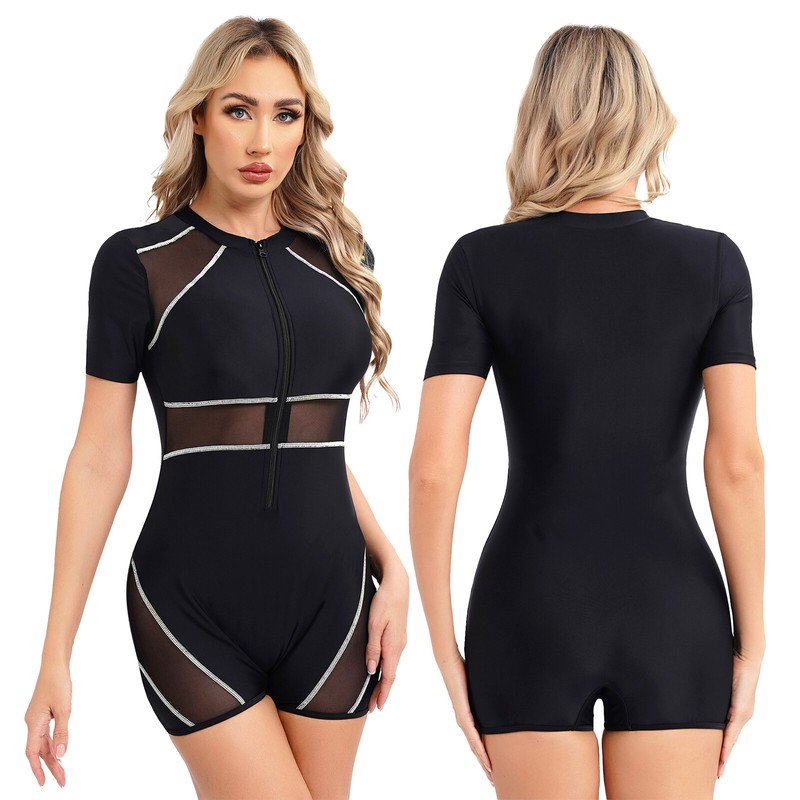 Designed with short sleeve boyleg bodysuit, with breathable mesh lining, chest pads provide soft support and enhance shape.