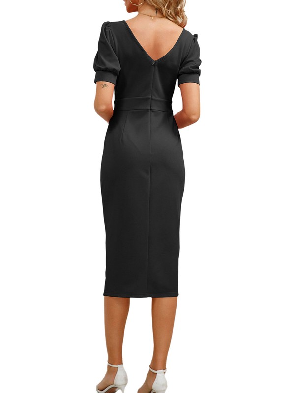 Midi pencil dress is easy to pair with high heels, belt, necklace and handbag, creating an elegant and eye-catching working outfit.