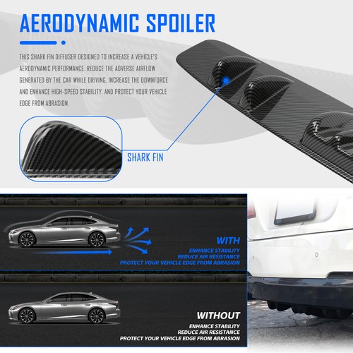 ๐ฎ๐ง๐๐ญ๐ข๐จ๐ง - This rear diffuser shark fin universal rear diffuser rear diffuser rear wings automotive is designed to increase the vehicle's aerodynamic performance. Reduce the adverse airflow generated by the car while driving, increase the downforce and enhance stability of vehicle during high-speed.