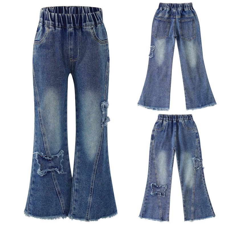 Kids Girls Pants Climbing Jeans Butterfly Trousers Youth Teens Denim Wide-leg