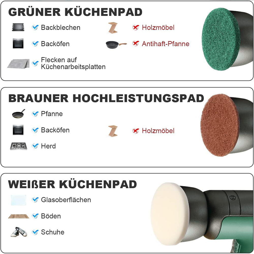 KÜCHENPAD FÜR BOSCH: Küchenpads kompatibel mit Bosch können mühelos grobe Verschmutzungen von Töpfen und Pfannen sowie Küchenoberflächen entfernen. Sie werden häufig zur Reinigung von Grillrosten, Grillplatten, unbeschichteten Küchengeräten und Backöfen verwendet.(Grün)