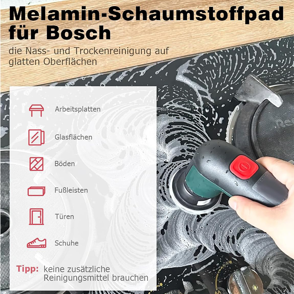 MELAMIN-SCHAUMSTOFFPAD FÜR BOSCH: Schaumstoffpads kompatibel mit Bosch eignen sich für die Nass- und Trockenreinigung auf glatten Oberflächen. Sie sind ideal für Arbeitsplatten, Glasflächen, Böden, Fußleisten, Türen und Schuhe. Es hilft Ihnen, Flecken mühelos und ohne zusätzliche Reinigungsmittel zu entfernen.(Weiß)