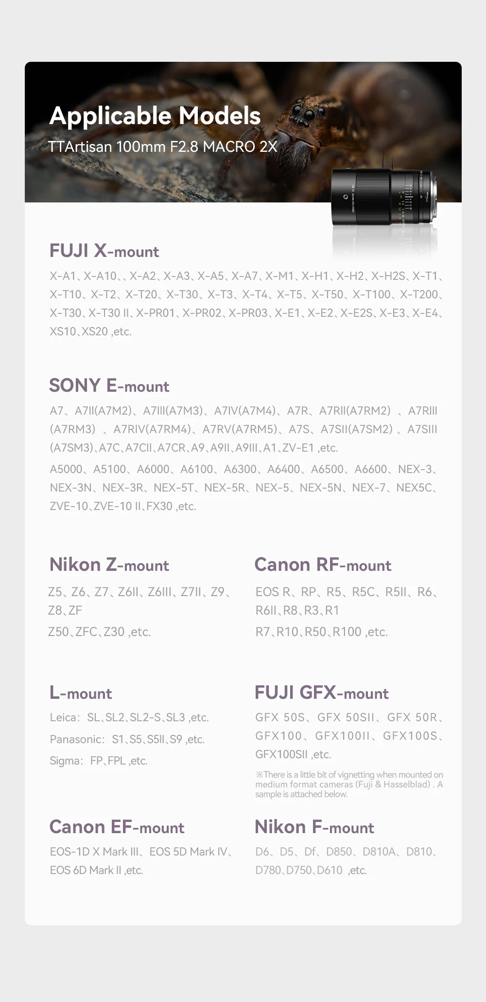 TTArtisan 100mm F2.8 2X Macro lens for Sony E Fuji X Nikon Z F Canon RF EF Lumix L mount digitales and SLR camera fotografica