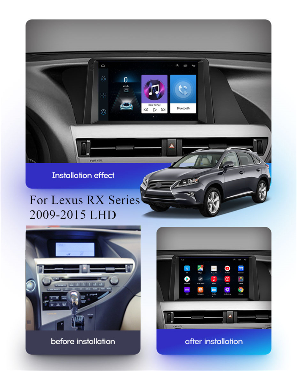 | Fitment | -For Lexus RX Series 2009-2015 LHD-Left Hand Drive Car(For RX200 RX200T RX270 RX300 RX350 RX450H...) |