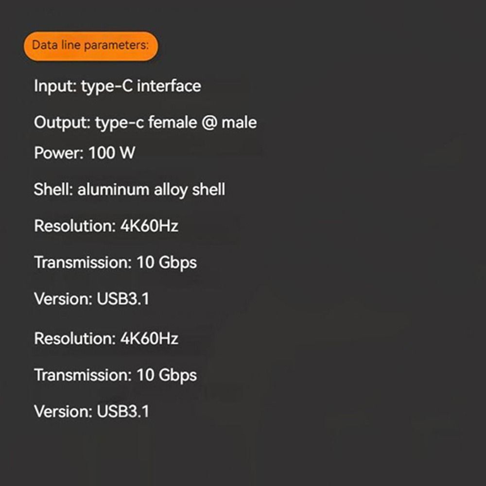 5X USB-C Male to Female HD 4K USB 3.2 Gen 2 10Gbps PD 100W Type C Extend Cables
