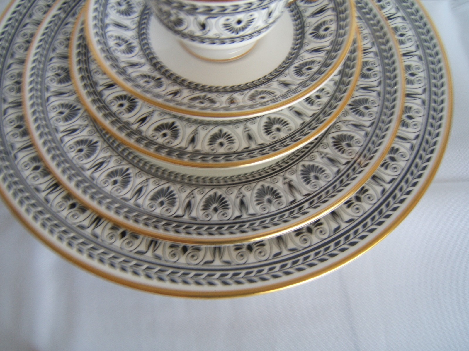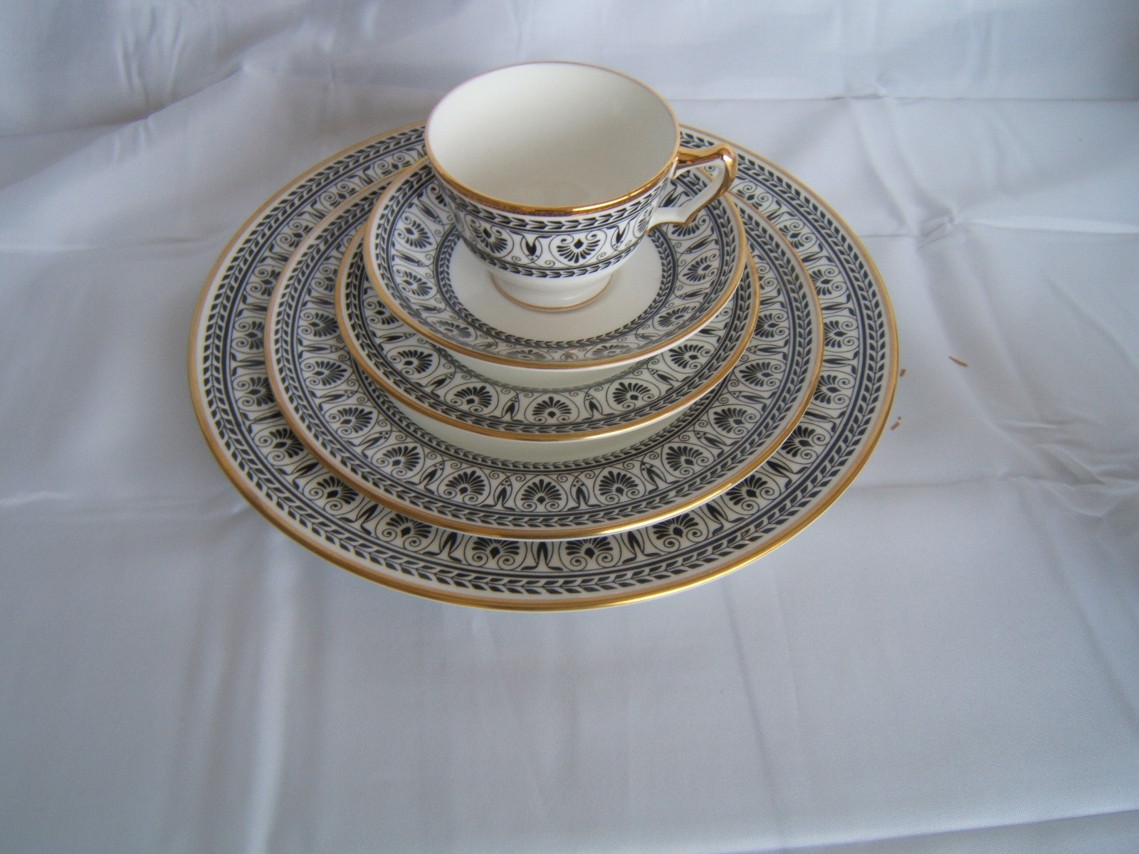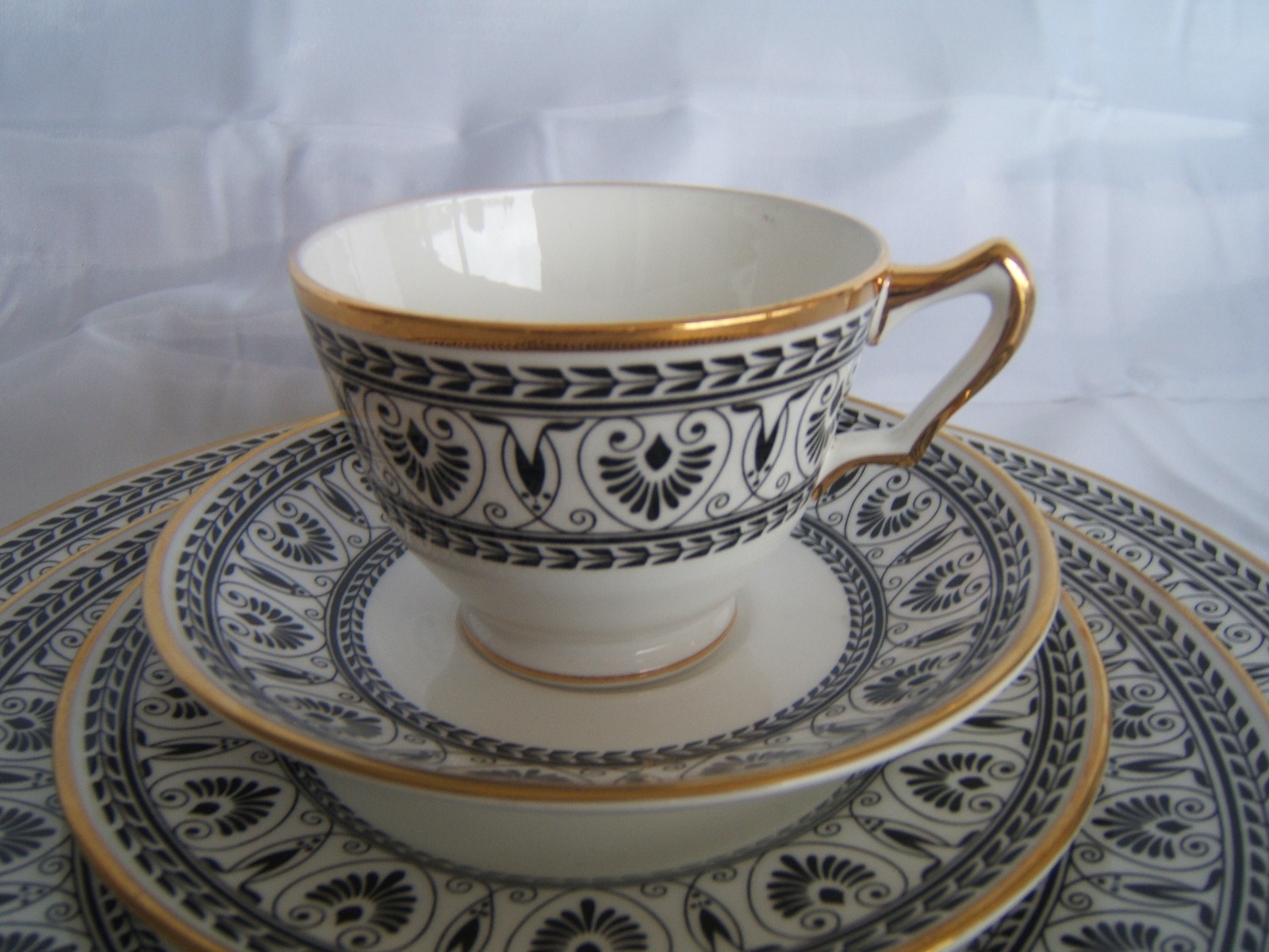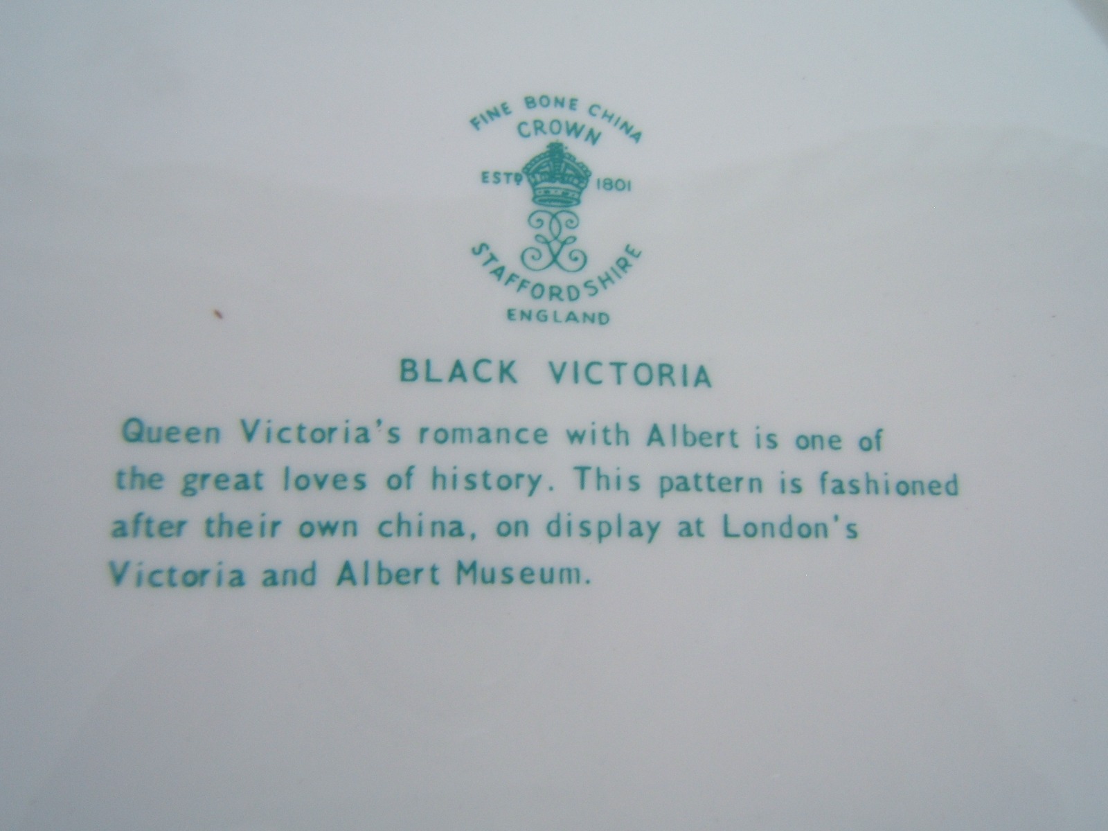 Crown Staffordshire Black Victoria China 5 Piece Dinner Salad Bread Plates C&S
