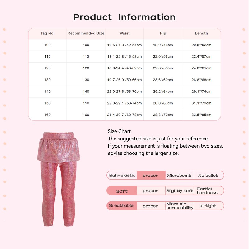 The skirted leggings are made of soft fabric, skin-friendly, lightweight, comfy to touch, makes your child feeling well.