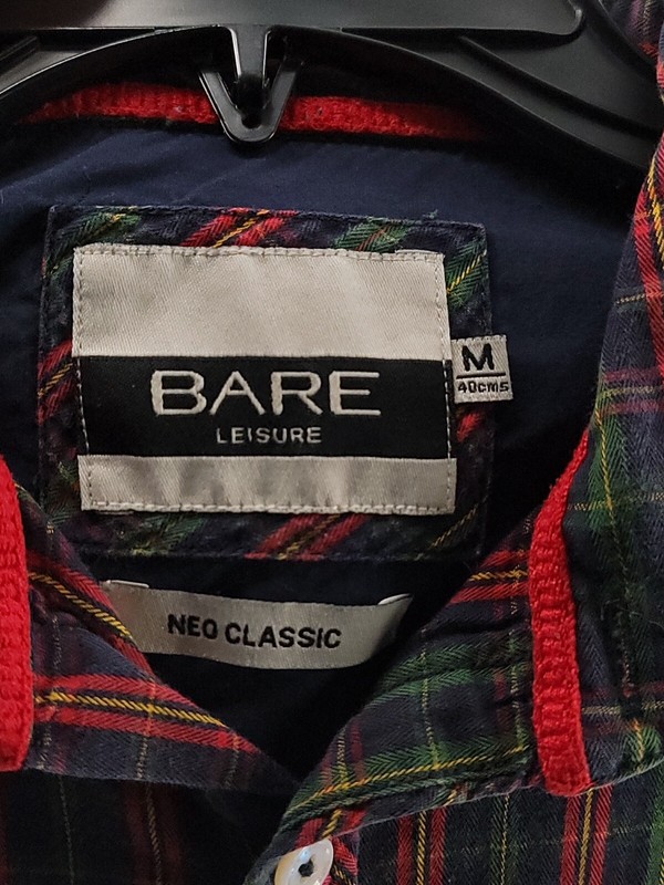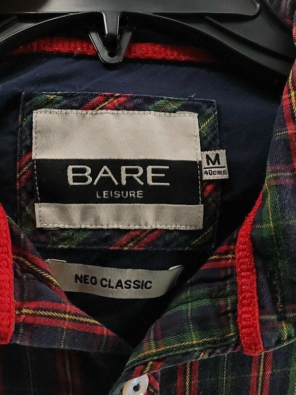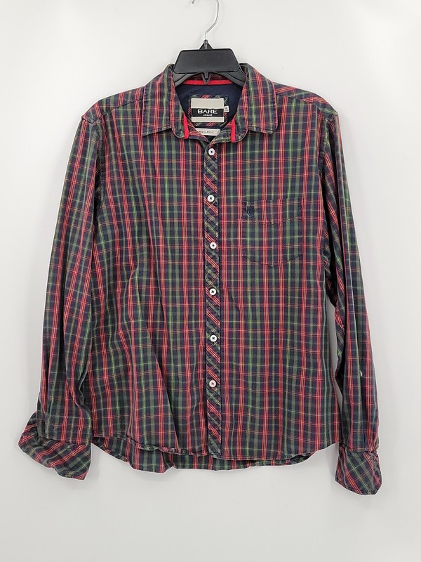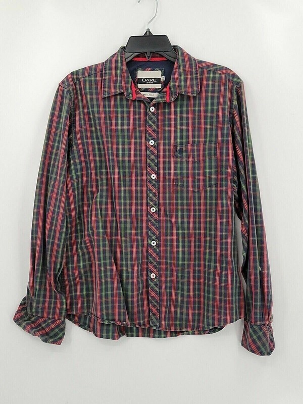 Bare Leisure Mens Button-Up Shirt Long Sleeve Medium Classic Plaid Spread Pocket