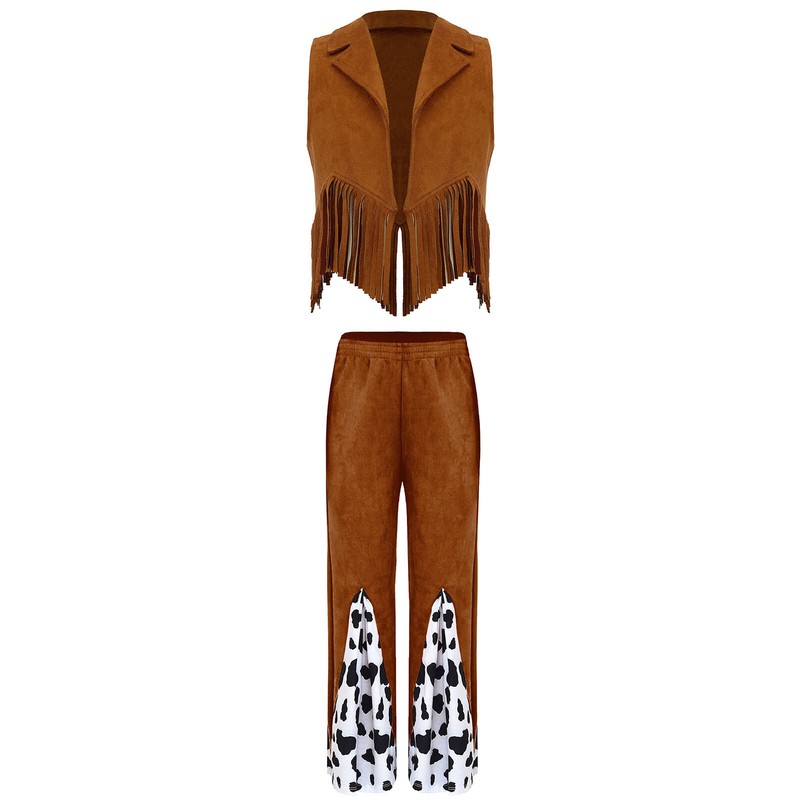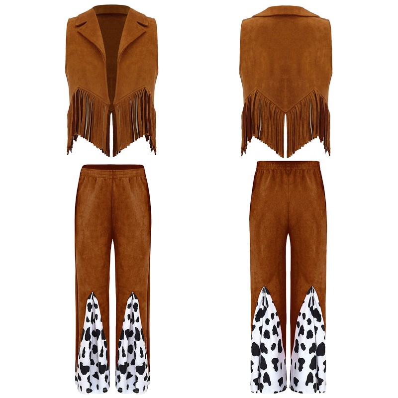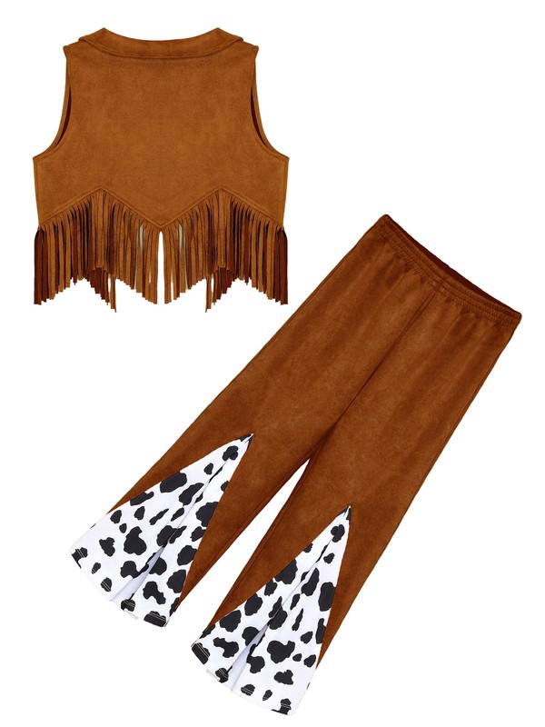 2 pieces cowboy vest and flared pants for girls, dress up them as cool and stylish western cowgirl.