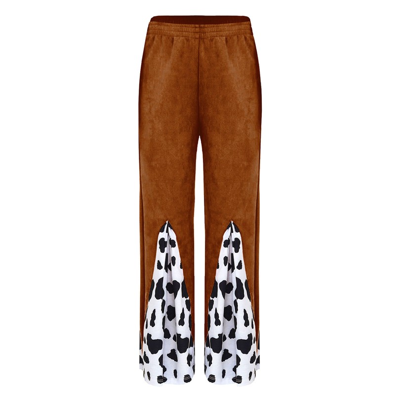Matching with cowboy flared pants, elastic waistband, cow print patchwork at bell bottom, looks very fashionable.