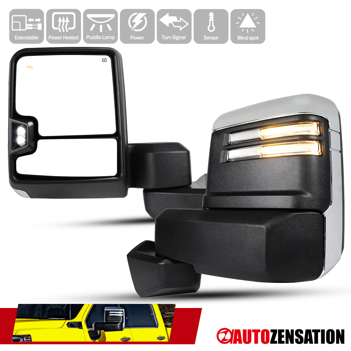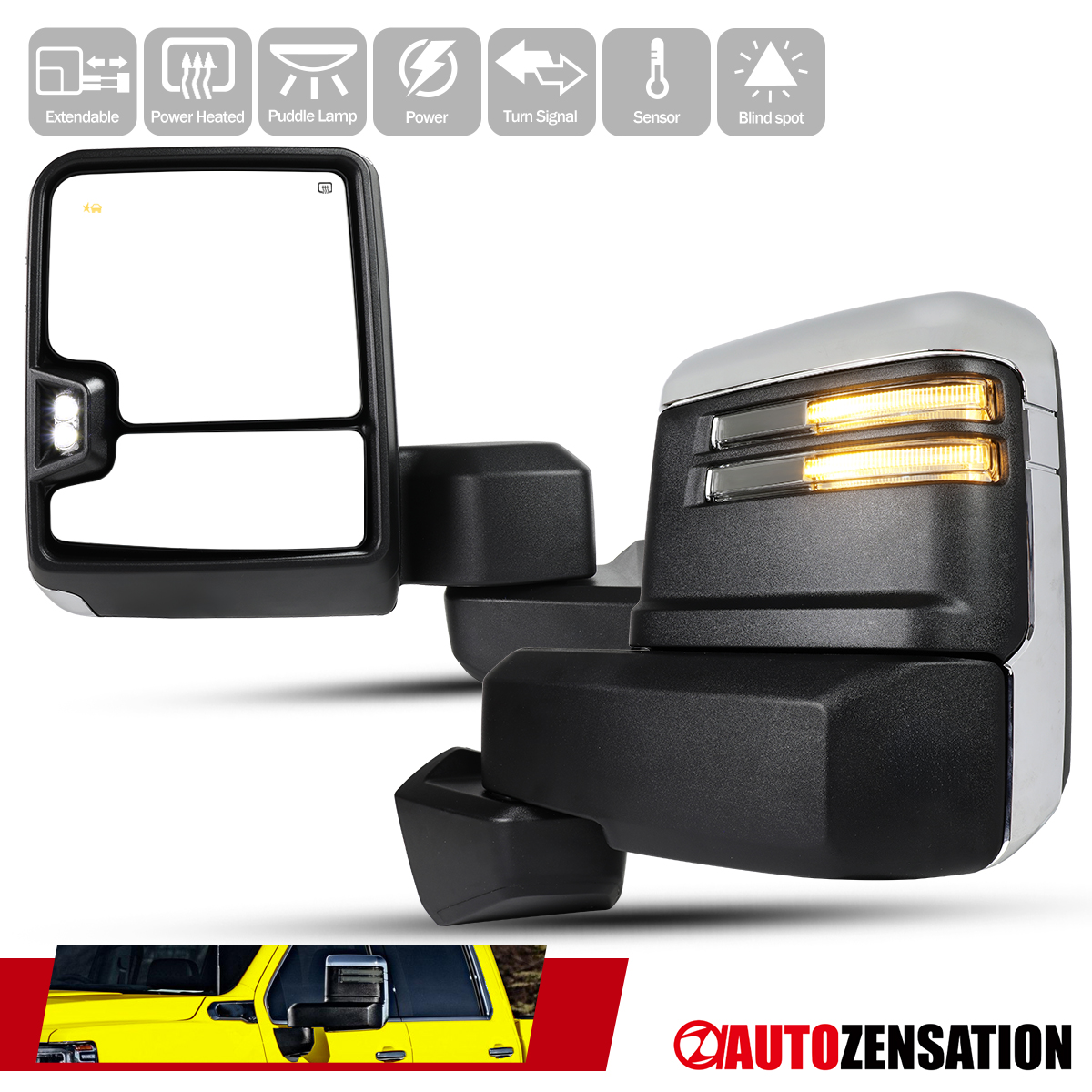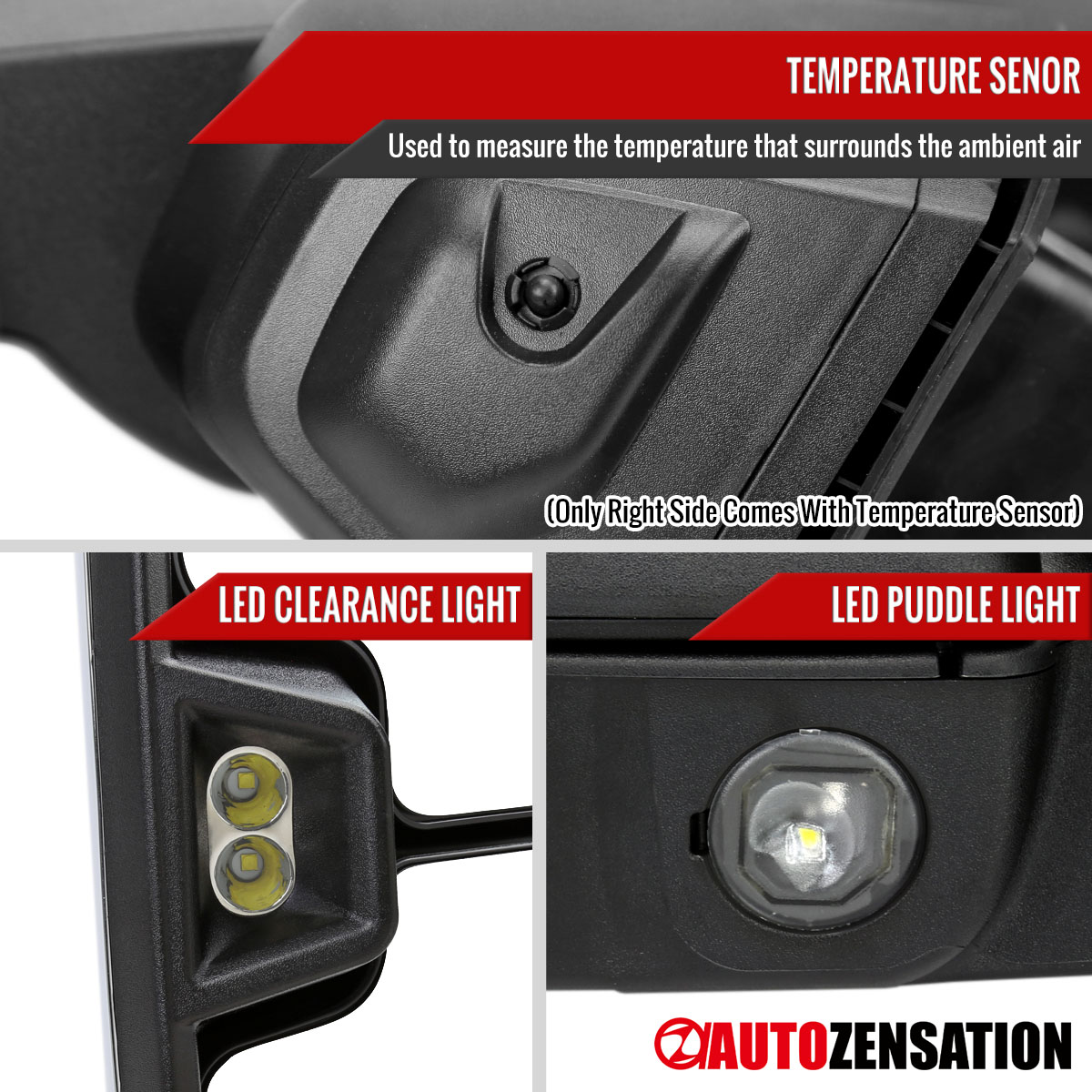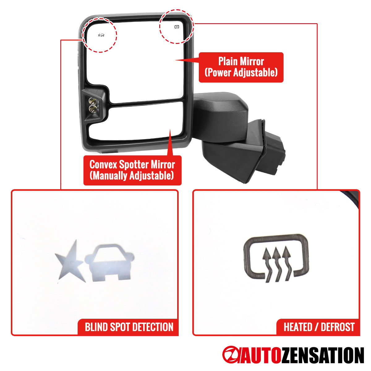 Fit 2019-2025 Sierra 1500 Power Heat Tow Mirrors+Blind Spot+LED Signal+Sensor