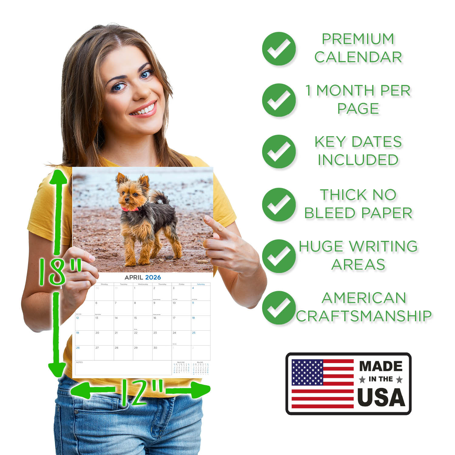 Yorkshire Terrier Dog Breed Calendar 2026 12x18 Made in USA