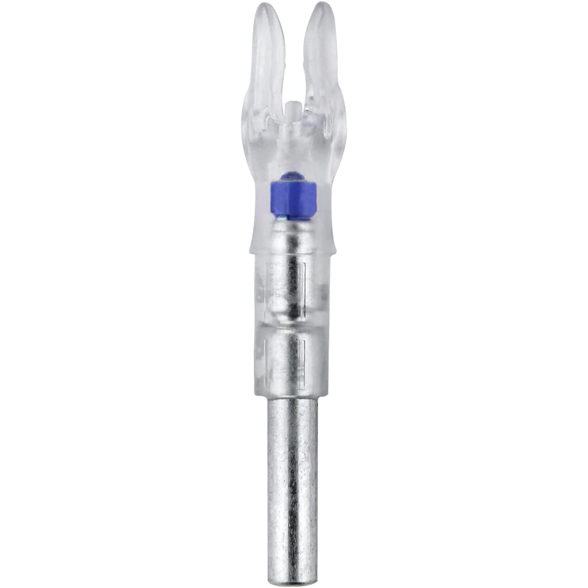 Nockturnal's Blue Lighted G-Nock features exclusive patented linear switch that is design works every time, no wires or connections. The simple bowstring activated push-on switch easily switches off when done and offers an extended burn time of 20+ hours. This lighted nock is waterproof and weatherproof so you can use in any conditions. See your arrow impacts under any light and find that arrow on pass-through shots.