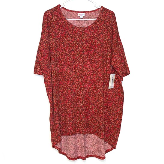 Step into a world of vibrant comfort with our stunning LuLaRoe Women's Irma Tunic in a captivating Orange/Red calico pattern. This short-sleeve tunic is designed to envelop you in a soft, breathable blend of polyester and spandex, making it perfect for both lounging at home and stepping out in style. The high-low hem adds a touch of flair, while the eye-catching floral design brings a burst of color to your wardrobe, ensuring you feel as fabulous as you look.