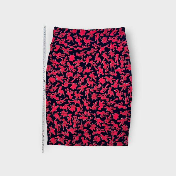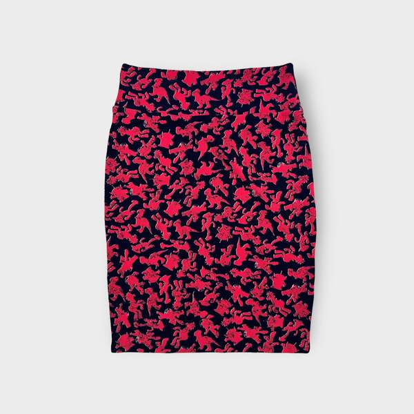 Step into a world of vibrant style and unparalleled comfort with the LuLaRoe Cassie Pencil Skirt. This stunning skirt features a playful graphic pattern inspired by Toy Story, blending shades of pink and blue that will make you stand out in any setting. Crafted from a soft and stretchy polyester/spandex blend, this skirt hugs your curves in all the right places, ensuring you feel confident and chic whether you're at the office or out with friends.