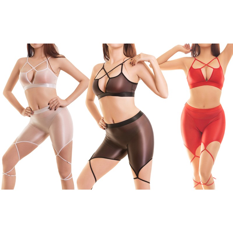 Women Wet Look Lingerie Set Bra Top with Briefs.