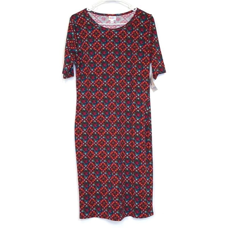 Step into a world of vibrant elegance with the LuLaRoe Julia Bodycon Dress in a stunning Red/Orange Mandala pattern. This eye-catching dress is designed to hug your curves in all the right places, offering a flattering fit that enhances your silhouette. Crafted from a soft and stretchy Polyester/Spandex blend, it promises all-day comfort while making a bold fashion statement. Perfect for date nights or special occasions, this dress will have you turning heads and feeling confident!
