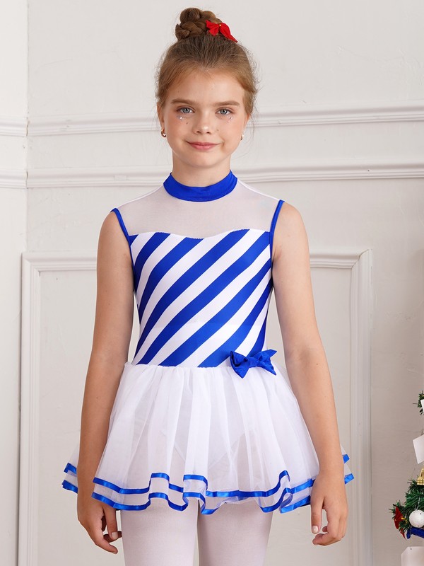 Kids Xmas Party Candy Cane Dress Christmas Ballet Dance Leotard Figure Skating
