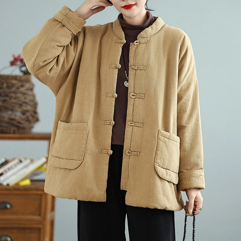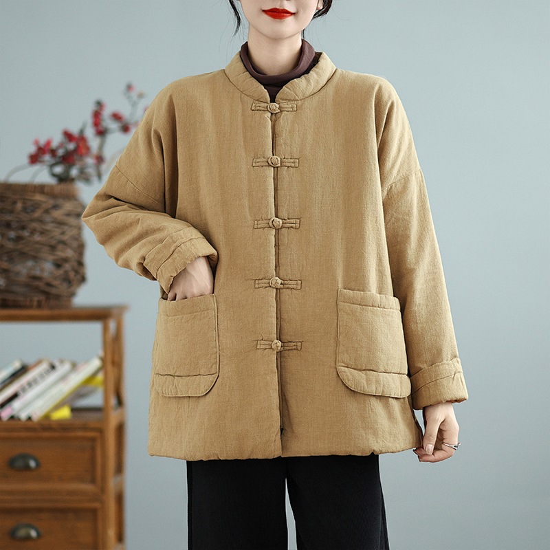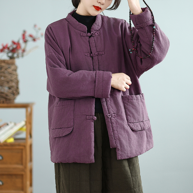 Womens Chinese Style Frog Button Stand Collar Padded Ethnic Jacket Quilted Coat