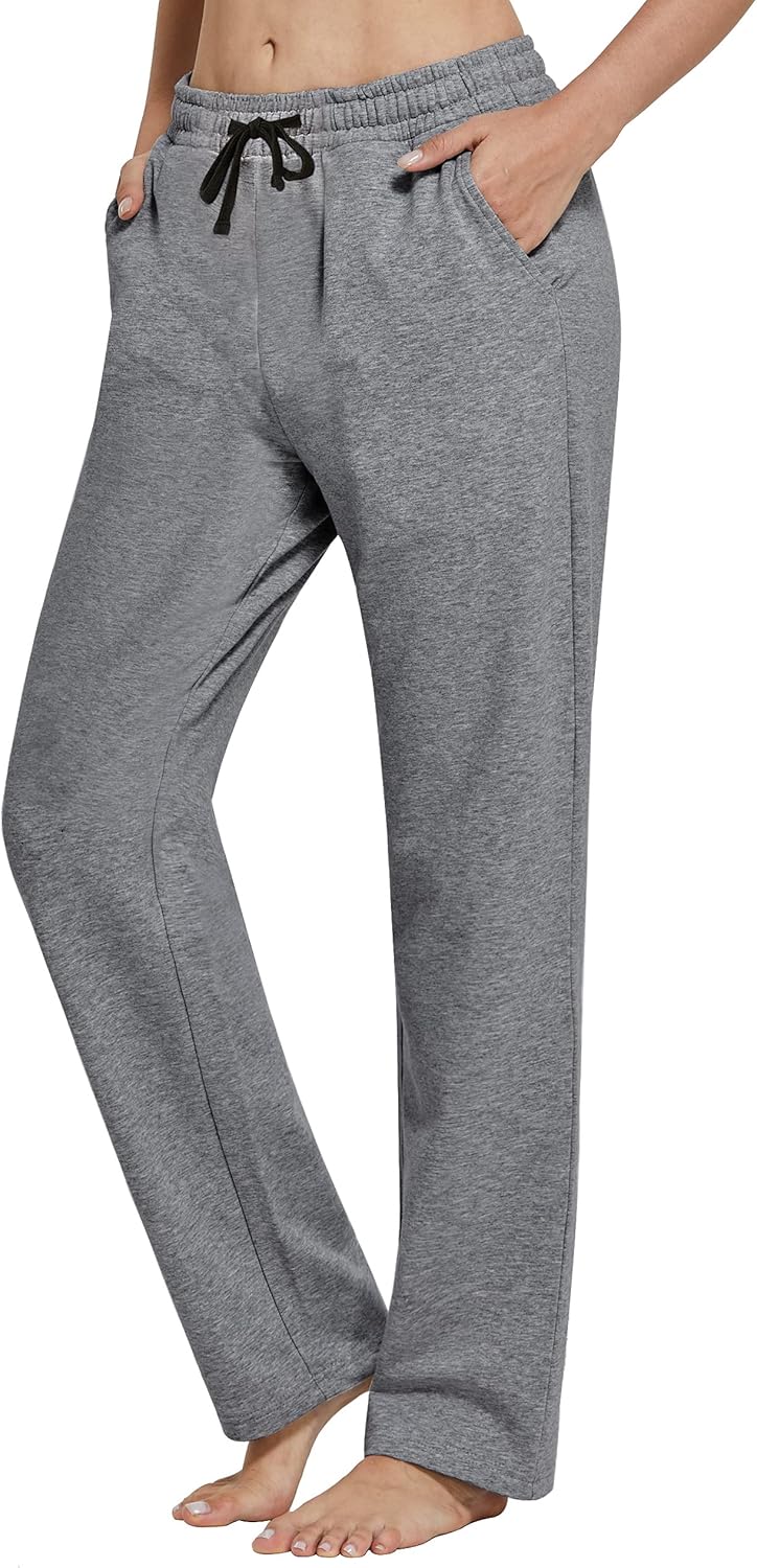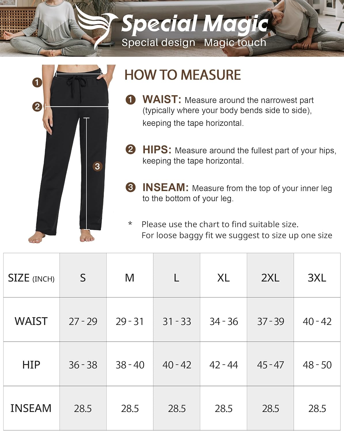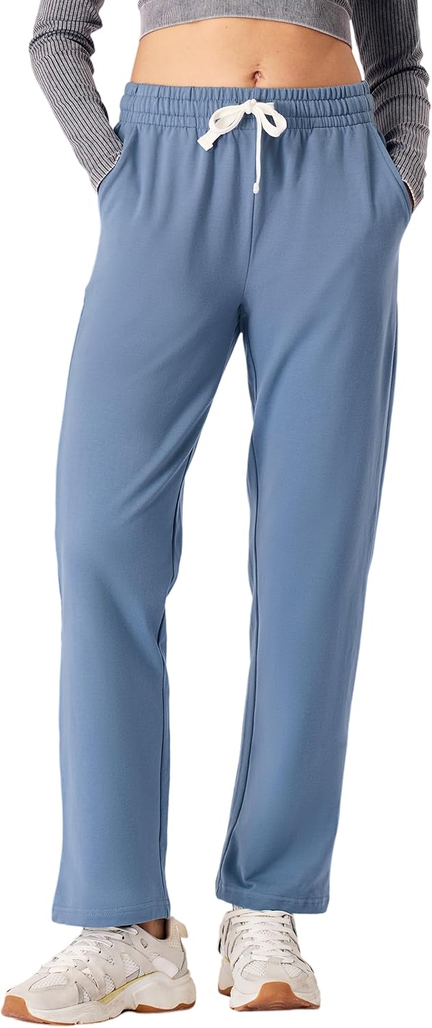 FASTENING- Elastic waistband with adjustable draw cord for a custom fit closureCOMFORT- Comfortable on the skin, with soft hand feel and static free fabric. Our cotton spandex quality is lightweight, breathable and with sweat wicking ability. Wider leg shape with open bottom for easy wear