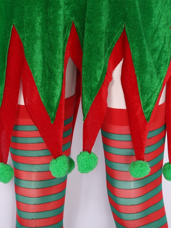 Set Include: 1Pc Christmas Dress, 1Pc Hat, 1 Pair of elf ears, 1 Pair of elf shoes, 1 Pair of Stockings, 1Pc Belt