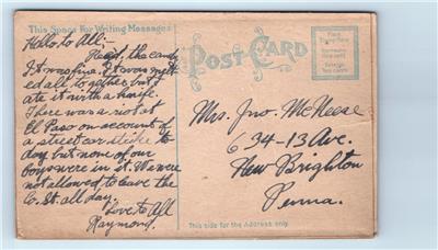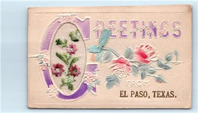 Unusual embossed embroidered card with attached ribbon - Greetings from El Paso, Texas