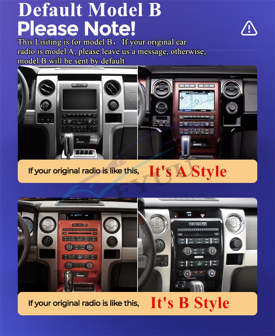 Important Reminder Default Model B: As shown in the picture, 2009-2012 F150 has two models of original central control: A And B, This lisiting is for model B, if your orignal car radio is model A, please leave us a message, otherwise, model B will be sent by default. |