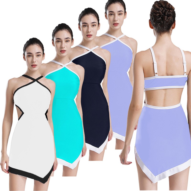 Built-in briefs to avoid embarrassment and enjoy the dance, 2 layers asymmetrical hem mesh skirt shows the beauty of the dance.