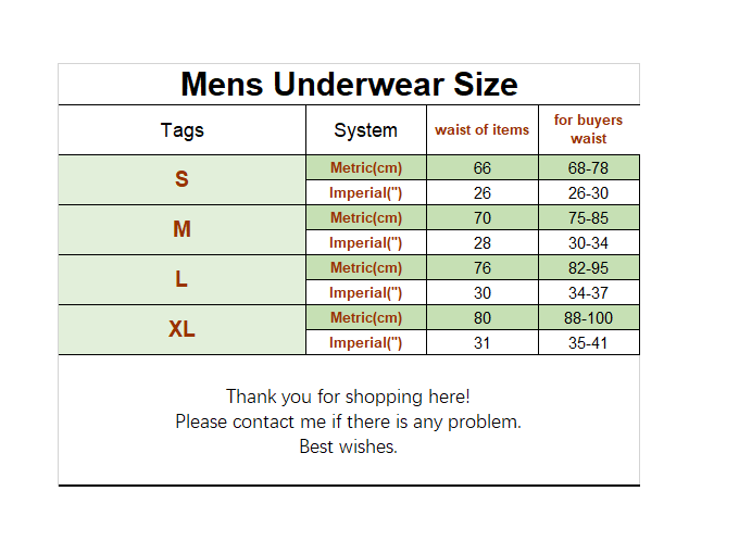 Machine Washable, but we suggest you hand wash Smooth Texture & Stretchy Fabric, Soft and Comfortable Super cute and comfy undies Concave-convex pouch SIZE TABLE PLEASE CHECK MY SIZE CHART CAREFULLY We constantly have something new and fresh for our customers. And yes, we know sometimes the item that you receive is not as expected, or maybe the order got lost in the mail, that is why we are always there to make it a little easier for you. You can always contact us at 24/7. Thank you for shopping, I'm sure you will find something that you love here.