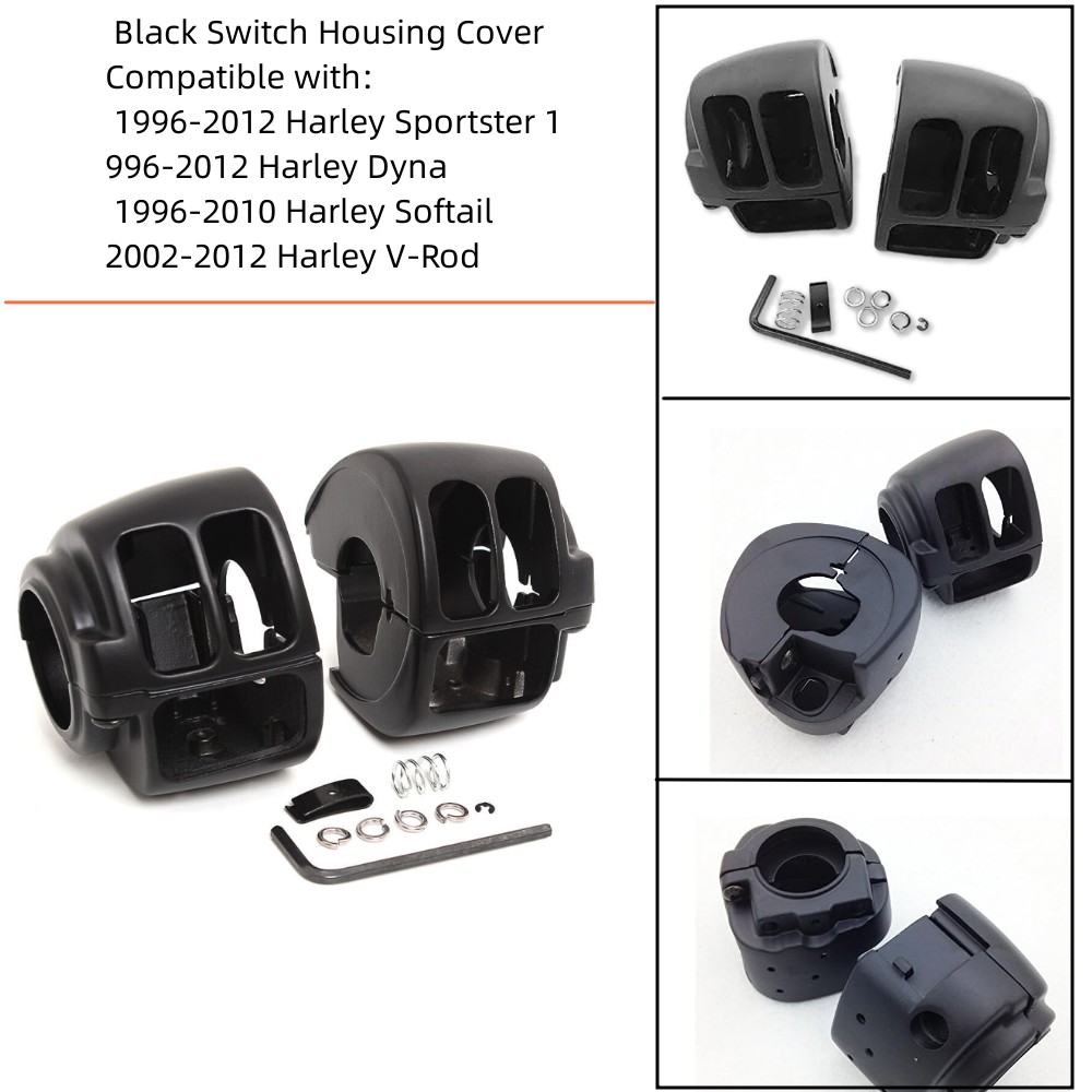 Specification: Quantity: 1 Pair( L and R) Instructions: Not Included Side of bike: Left and Right Condition: Brand New Material: High Quality Billet Aluminum Color/Finish: Black we also have chrome color. Warranty: 1 Year from date of purchase.Black Switch Housing Cover Compatible with 1996-2012 Harley Sportster 1996-2012 Harley Dyna 1996-2010 Harley Softail 2002-2012 Harley V-Rod