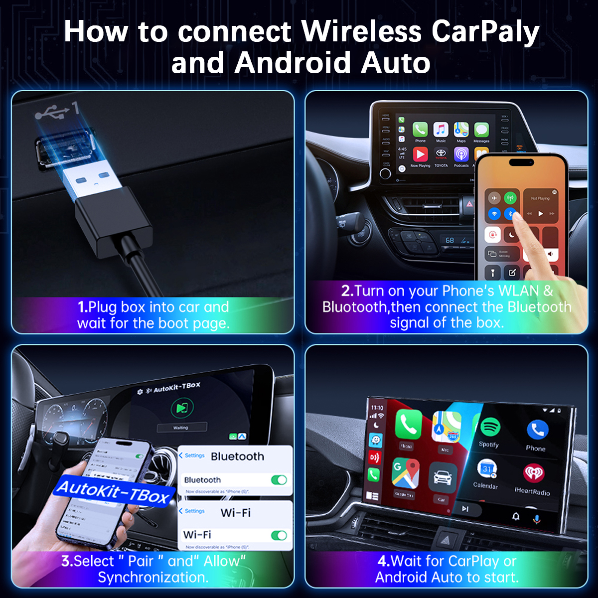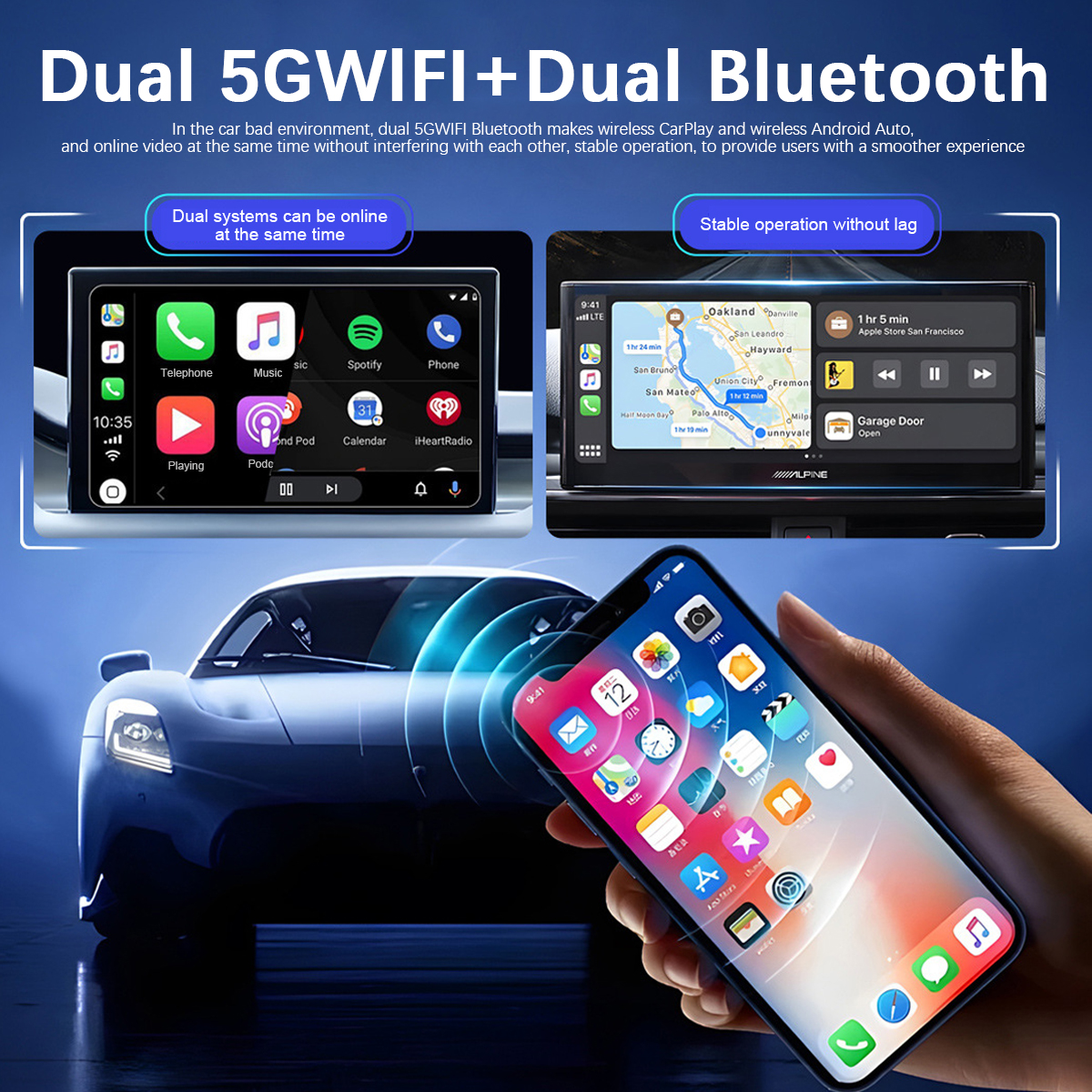 -Wireless CarPlay Adapter- After the first installation, Car TV Mate Pro will automatically start and quickly connect to your iPhone when the car engine starts. Even if your phone is in your pocket or backpack. Car TV Mate Pro can quickly identify your phone. Car TV Mate Pro also support voice control, steering wheel control, touch screen control and knob operation. You can use SIRI to assist with driving, such as listening to music, navigating and reading text messages.